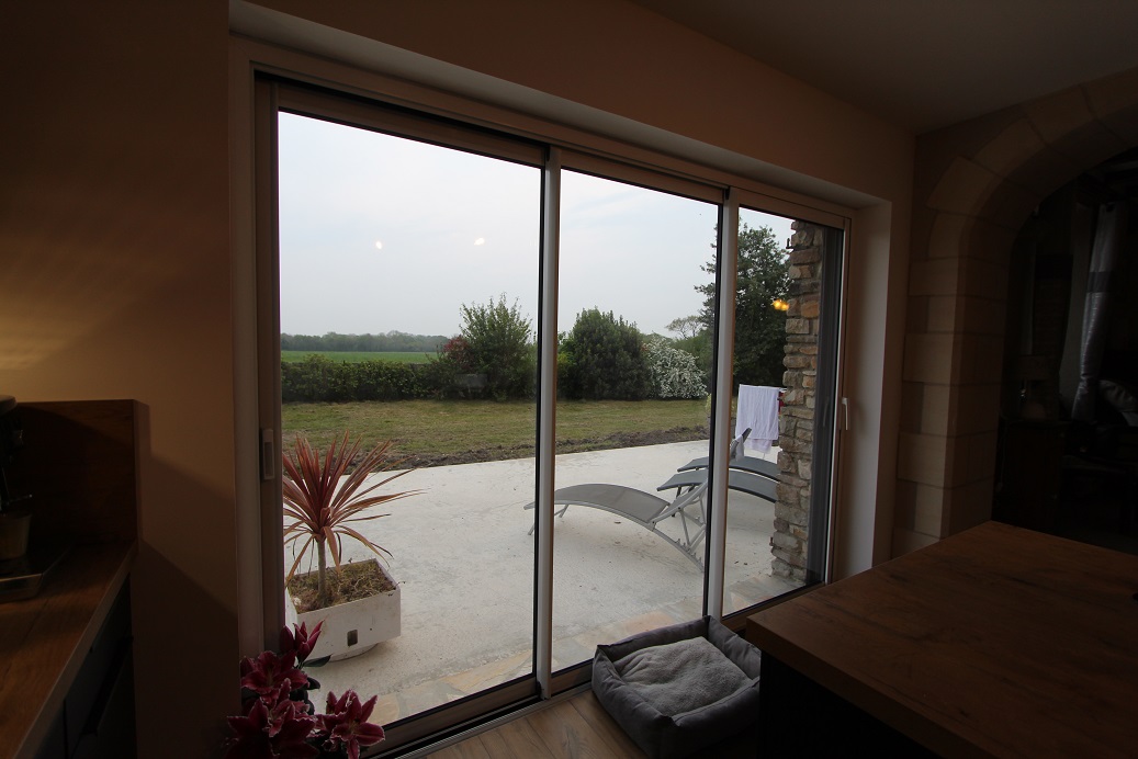 Luminosité Éclatante : Baie Vitrée Suite à l’Installation de Cuisine à Coutances